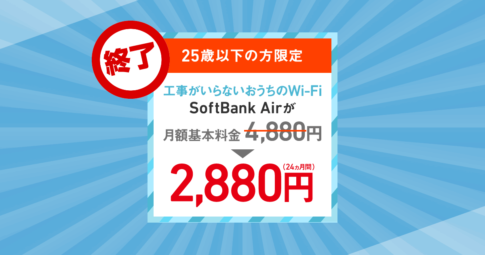 ソフトバンクエアー「U-25限定SoftBank Air 割引」は2023年11月30日をもって終了しています。 2026年1月現在実施中のキャンペーンはソフトバンクエアーのキャンペーンの比較方法という記事にてご確認ください。 ソフトバン...