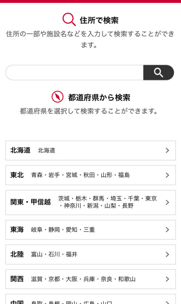 - 公式サイトのサービスエリアマップにアクセスする
