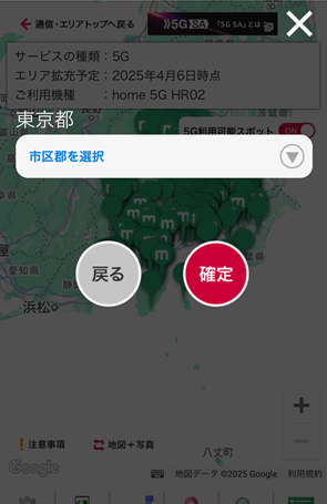 ドコモ home 5Gの提供エリアをマップで検索する方法