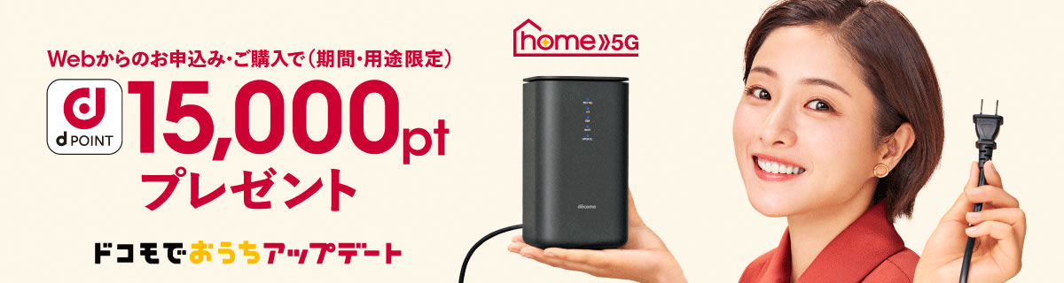 ドコモショップでドコモ home 5Gを申し込みするとdポイント5,000ptプレゼントの特典を受けられます。