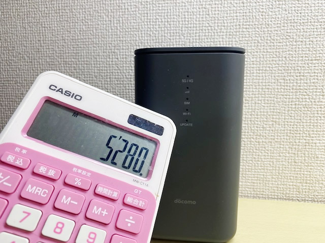 月々サポート適用後の月額料金(3,245円)に専用ルーター「home 5G HR02」の36回分割支払い額(2,035円)が上乗せされるため、36ヶ月間の請求額は月額5,280円となります。