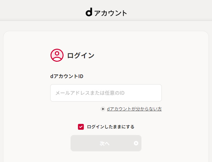 - dアカウントのログイン画面にアクセスする