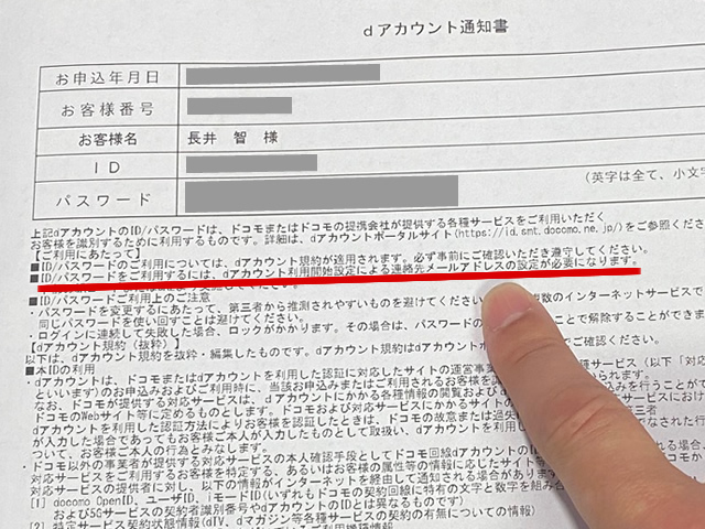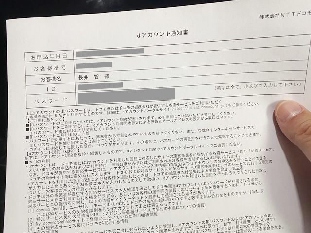 非対面で契約した場合は後日「dアカウント通知書」が郵送される