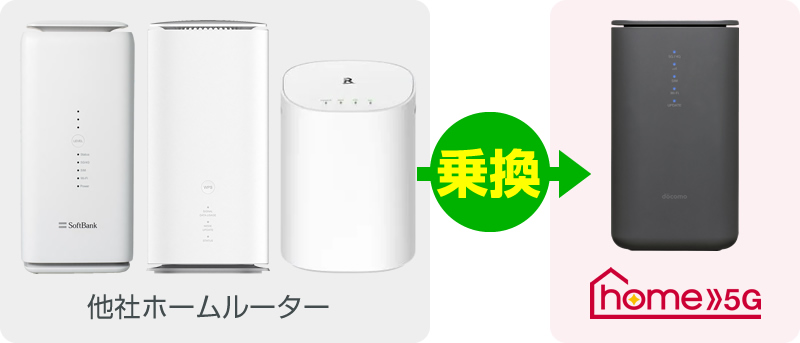 「home 5G 乗り換えキャンペーン」は他社ホームルーターからドコモ home 5Gへ乗り換える方が対象者です。