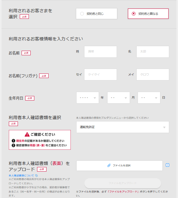 home5Gの申し込みでは契約者とは別にhome5Gの利用者登録が可能です。