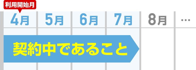 利用開始月の「4か月後の月末」時点でもご契約中であり、契約者がdポイントクラブ会員(法人名義の場合はドコモビジネスメンバーズ会員)であること。