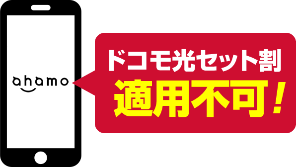 ただし、NTTドコモの格安料金プランである「ahamo(アハモ)」は、残念ながらドコモ光セット割の割引対象外となっていますのでご注意ください!