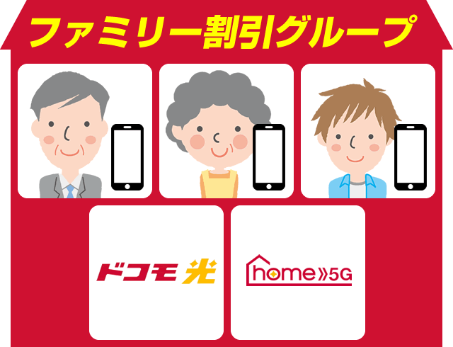 ファミリー割引のグループに入っているご家族の携帯電話もドコモ光セット割の対象プランなら割引対象になるんです。