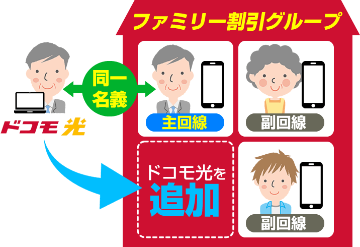 - ファミリー割引の主回線とドコモ光の契約者が同じ名義の場合