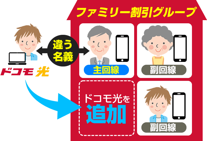 - ファミリー割引の主回線とドコモ光の契約者が違う名義の場合