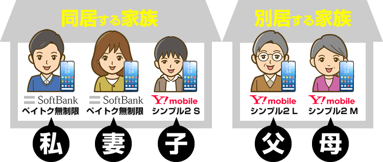 また、別居する父はワイモバイルの「シンプル2 L」、母はワイモバイルの「シンプル2 M」を契約中です。
