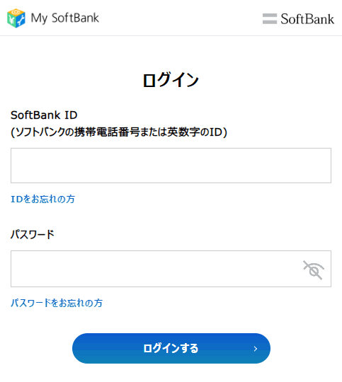 既にMy SoftBankにログインしている場合には上記のログイン画面は表示されません。