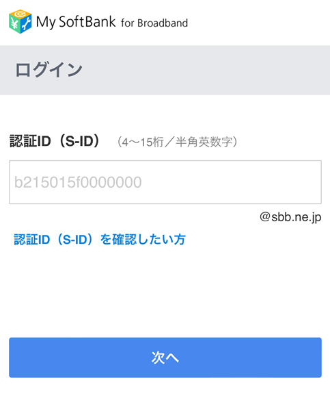 [SoftBank ID]にはモバレコAir契約者のソフトバンク携帯電話番号を入力してください。