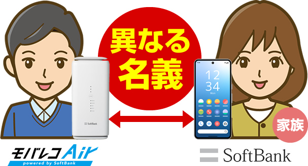 モバレコAir契約者と契約者家族が同じ「家族割引」のグループ内に組み込まれている場合のみ、My SoftBankでおうち割 光セットの申し込みが可能です。(家族割引とは、家族間の通話が24時間無料となるサービスです。)