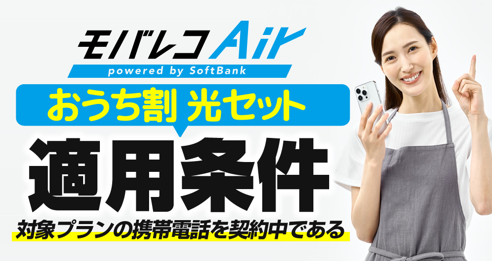 上記で解説したように、おうち割 光セットはソフトバンク/ワイモバイルの対象プランを契約している方が「モバレコAir」も契約することで適用できる条件です。