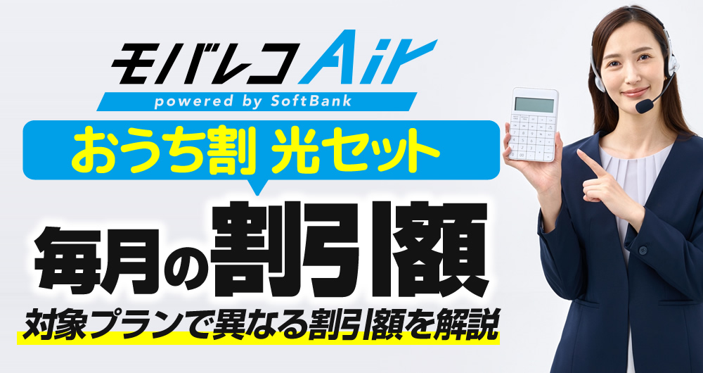 この記事ではモバレコAirでも適用可能な割引キャンペーンである「おうち割 光セット」の適用条件や対象プランによって異なる毎月の割引額、割引適用するための申し込み方法を解説します。