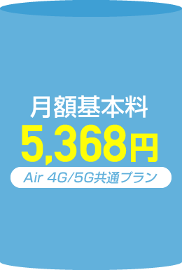 | 月額基本料金 (Air 4G/5G共通プラン) | 5,368円 |