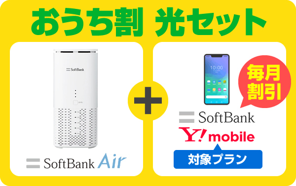 おうち割 光セットはソフトバンクエアーの料金が割引されるものではなく、ソフトバンクエアーの契約者が契約している携帯電話などのSoftBankとY!mobileの対象プランが毎月割引される特典です。