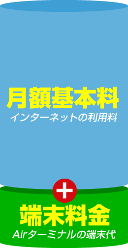 ソフトバンクエアーの料金は、インターネット利用料金である[月額基本料金]と使用する専用端末(Airターミナル)の[端末料金]の2つが重なり合った料金構成となっています。