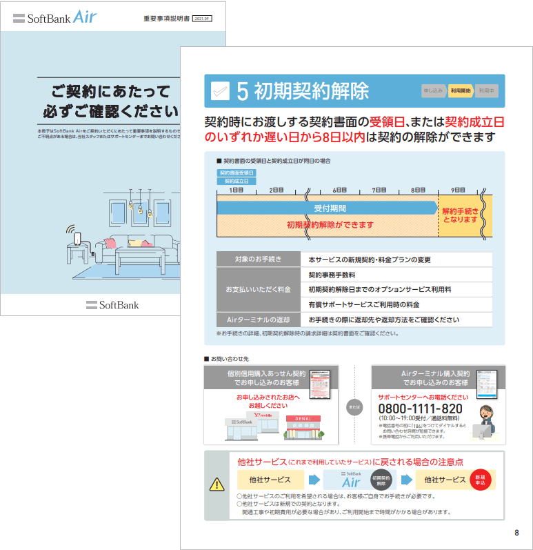 「初期契約解除」と「8日間キャンセル」は、ソフトバンクエアーの販売方法(契約した方法)は関係ありません。