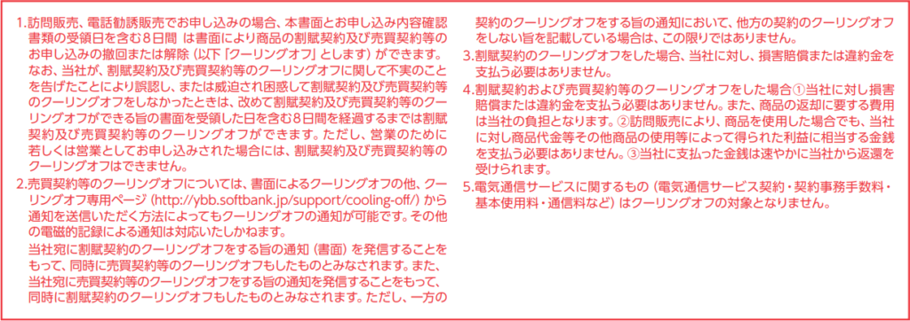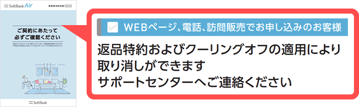 「クーリングオフ」が適用できるのは訪問販売・電話勧誘販売・Webページ販売のいずれかの販売方法でソフトバンクエアーを契約した場合に限られています。