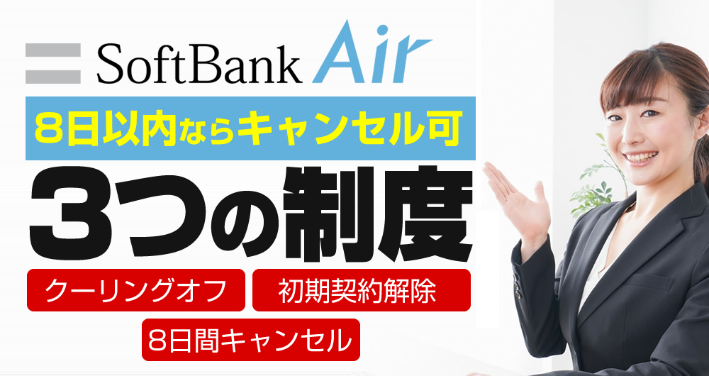 この記事ではソフトバンクエアーで適用できる3つのキャンセル制度(クーリングオフ・初期契約解除・8日間キャンセル)の違いを中心に解説しました。