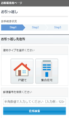 Step2 引っ越し先の建物タイプを選択して郵便番号を入力する