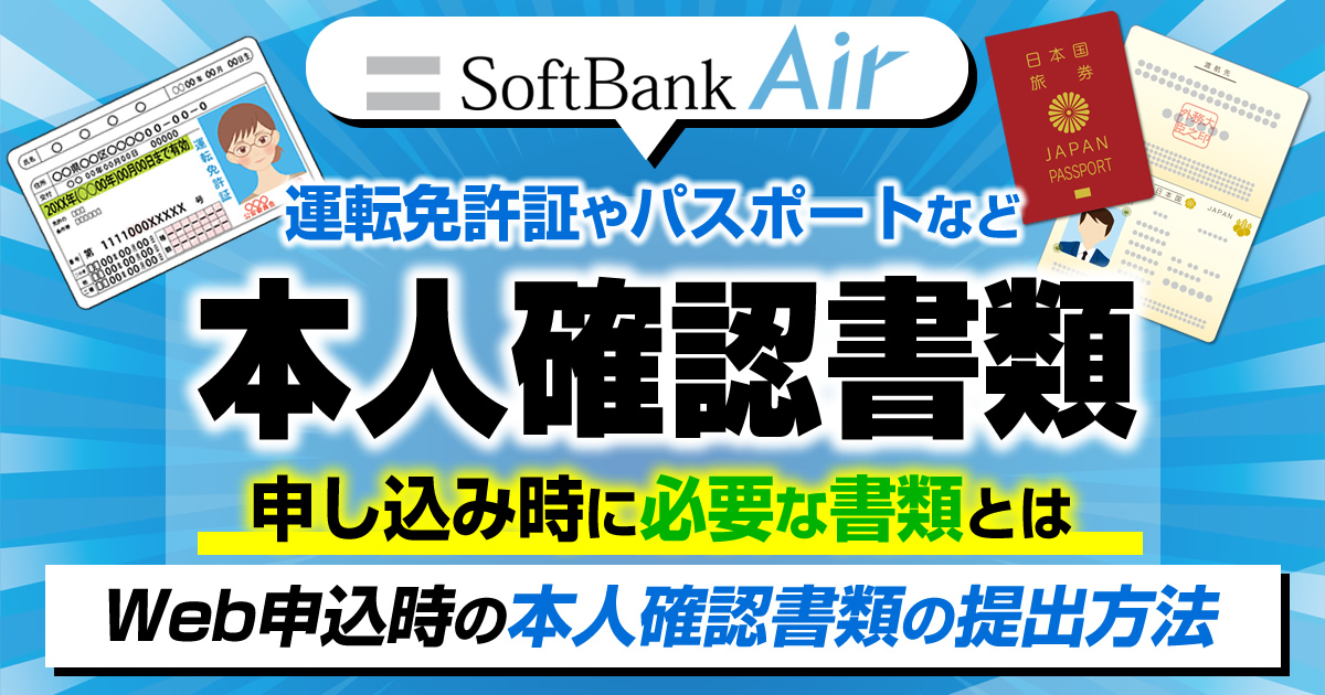 この記事ではソフトバンクエアー申し込み時に提出が必要となる本人確認書類(身分証明書)の種類、Web申し込みの場合の本人確認書類の提出方法などについて解説します。