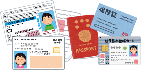 | 日本国籍 | 運転免許証(または運転経歴証明書) 日本国パスポート 個人番号カード(マイナンバーカード) 身体障がい者手帳 療育手帳 精神障がい者手帳 |