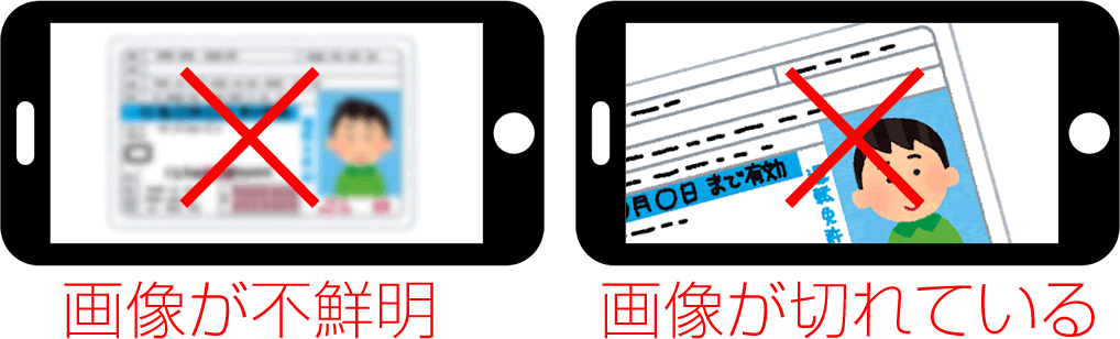 アップロードする本人確認書類の画像が「不鮮明」「切れている」などの場合は本人確認書類として認められません。