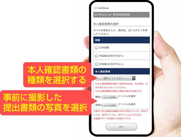 ソフトバンクエアーの契約申し込みに必要な本人確認書類の提出方法