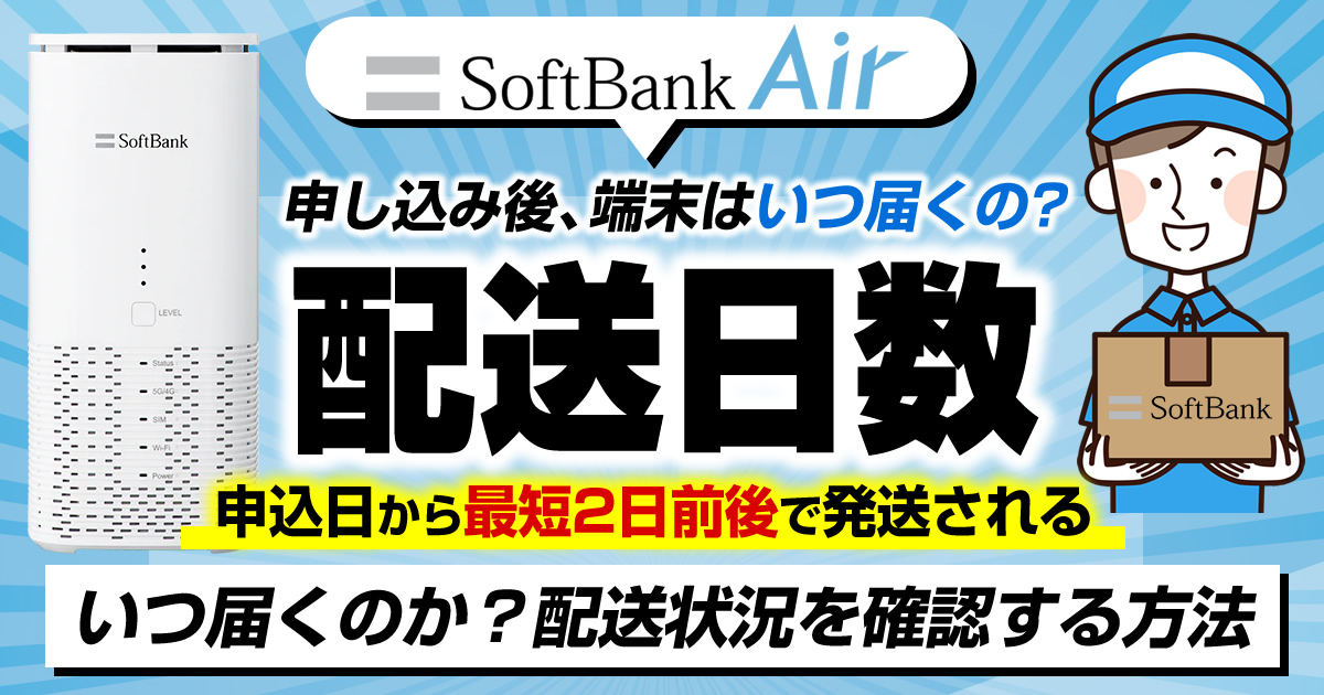 この記事では、ソフトバンクエアーを申し込んだ後に専用端末がいつ届くのか、1日でも早く端末を届けてもらうための流れ、配送状況の確認方法、どこの配送業者が届けるのか、などをまとめて解説します。