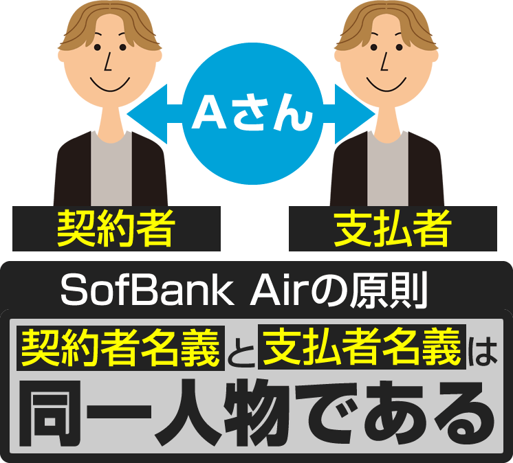 ソフトバンクエアーの契約は「契約者」と「支払者」の名義が同一であることが契約条件となっています。