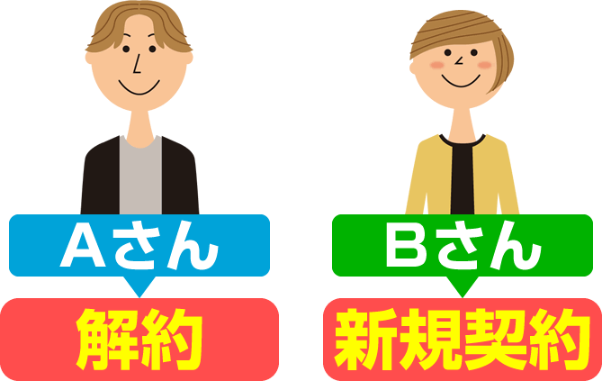 「Aさん」が契約するソフトバンクエアーの名義を「Bさん」にどうしても変更したい場合、「Aさんの契約は通常通り解約」して、「Bさんは新規契約する」しか方法がありません。