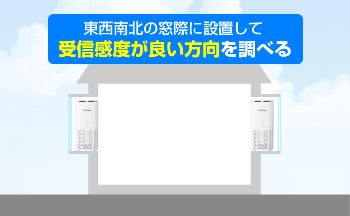 しかし、SoftBankの基地局(電波塔)がどこにあるのかを公表していませんので各方向に窓がある場合はどちらの方向に設置すると受信感度が良いか確認することをおすすめします。