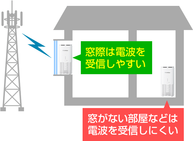 ソフトバンクエアーのAirターミナルを設置した方向に基地局(電波塔)がない場合は窓際であっても受信しづらい状況となってしまいます。