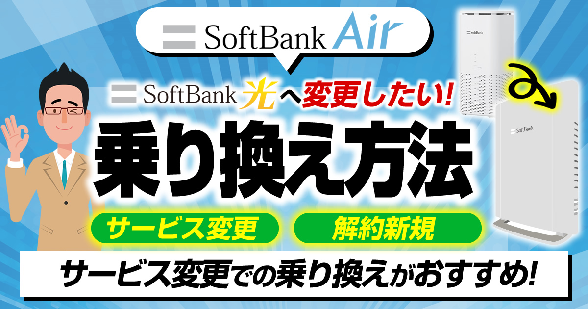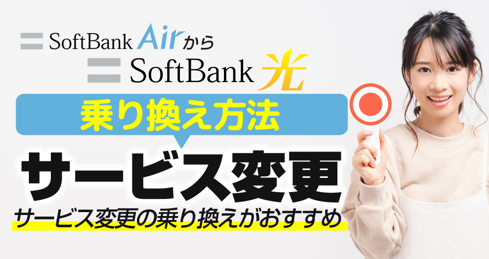 また、ソフトバンク光の回線工事が終了するまでソフトバンクエアーを利用出来るため、インターネットが利用できない期間が発生しないので「サービス変更」での乗り換えがおすすめです。