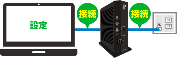 回線工事が終了したら、契約者自身でNTT機器などの接続と設定を行います。