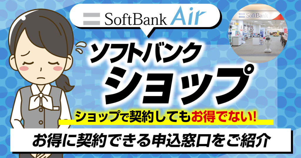 ソフトバンクショップでもソフトバンクエアーの申し込みは可能ですが、契約申し込みをした契約者に対してショップが提供するキャンペーン(謝礼)の内容が良くないのでお得に契約できません。