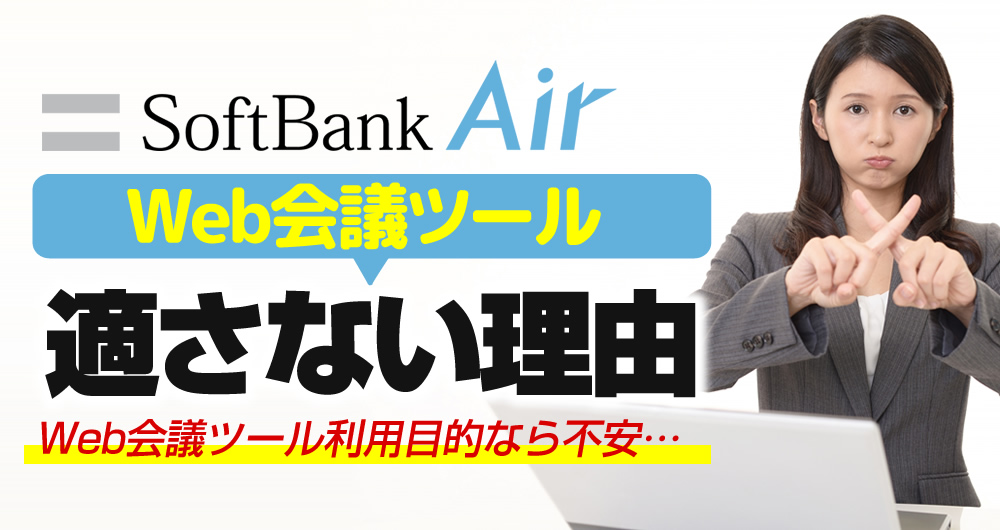 大量のデータを通信するWeb会議ツールはソフトバンクエアーの速度制限(通信制限)の対象となる可能性がありますので、ソフトバンクエアーでWeb会議ツールの利用は向いていないという結論に至ります。