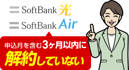 - SoftBank 光のお申し込み日が属する月を含む過去3ヵ月以内に、「SoftBank 光」および「SoftBank Air」または、そのいずれかのサービスを解約していないこと。