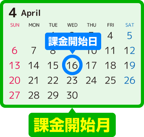 課金開始日が属する月が「課金開始月」です。
