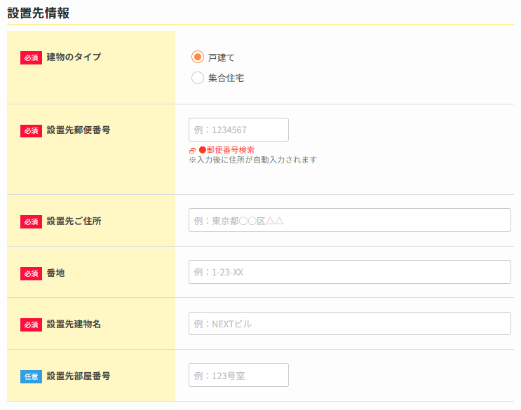 [ご利用先の住所]には、複数契約となるソフトバンク光の契約住所情報を入力/選択してください。