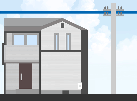 また、右のイラストのように、ソフトバンク光を戸建住宅(ファミリータイプ)で契約する建物に既に光回線は繋がっているものの、光回線が宅内(建物内部)に引き込まれていない場合も工事業者が訪問する「立ち会い工事あり」となります。