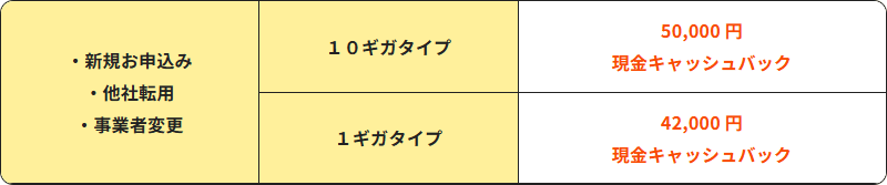 | ソフトバンク光 10ギガ | 最大50,000円キャッシュバック |