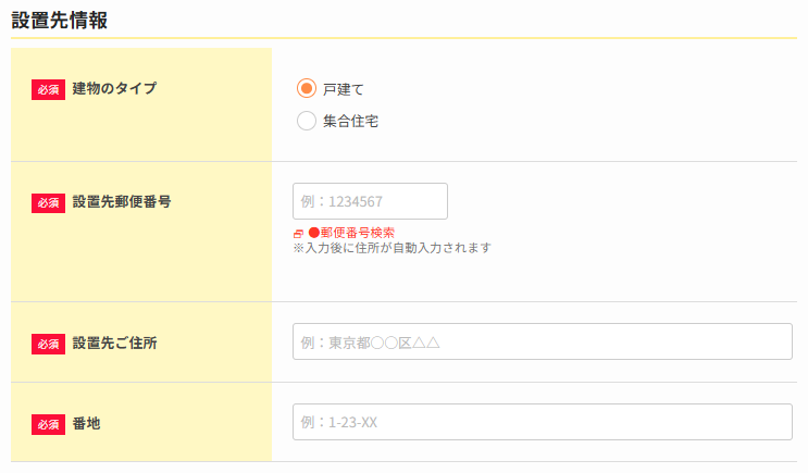 「ご利用先の住所」はソフトバンク光を利用する住所となります。