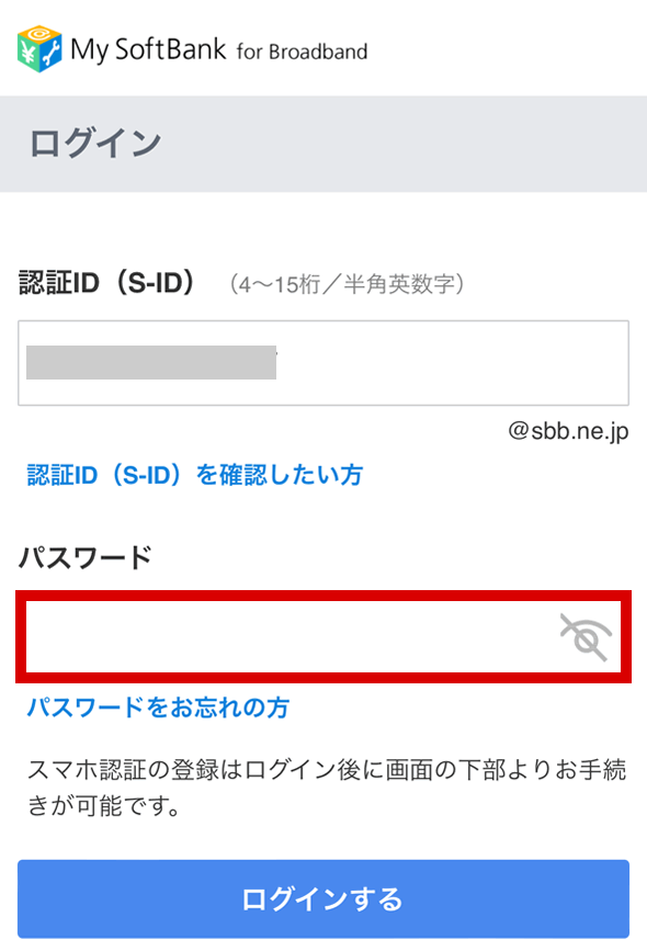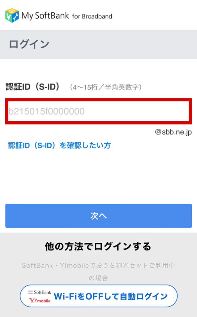認証ID(S-ID)はソフトバンク光を契約後にSoftBankから送られてきた書面等に記載されています。