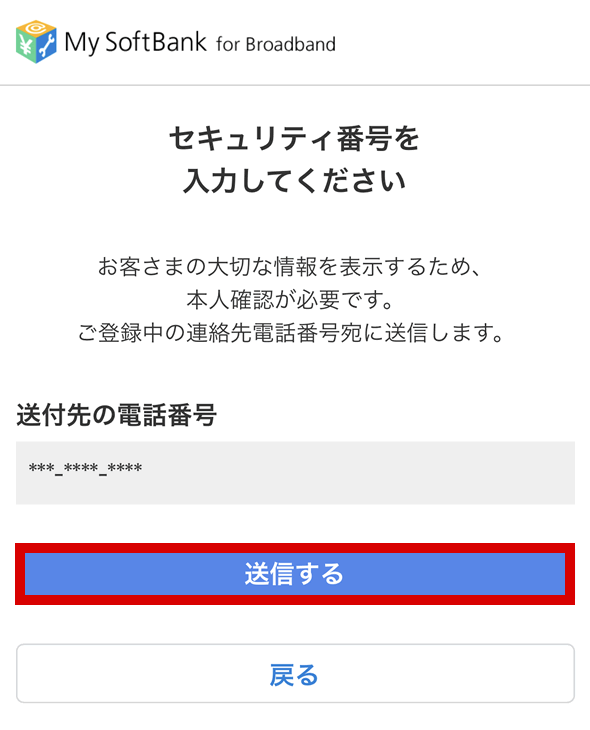 ソフトバンク光の申込時に登録した”連絡先携帯電話”のSMS(ショートメール)に「セキュリティ番号」が送信されてきます。